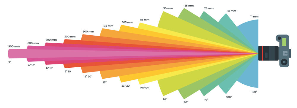 Za standardowy uważa się obiektyw o ogniskowej 50 mm (lub jego odpowiednik w wypadku aparatu cyfrowego). Jego kąt widzenia wynosi ok. 45 stopni, czyli jest zbliżony do kąta widzenia ludzkiego oka. Wszystkie wartości poniżej 50 mm określają obiektywy jako szerokokątne, a powyżej jako wąskokątne (teleobiektywy). Im krótsza ogniskowa, tym szerszy kąt widzenia. Obiektyw szerokokątny 28 mm ma kąt widzenia 75 stopni, pozwala sfotografować w małym pomieszczeniu grupę osób. Teleobiektyw 200 mm pozwala na duże zbliżenie fotografowanych obiektów. Obiektyw zmiennoogniskowy ze względu na regulowaną ogniskową opisywany jest przez dwie wartości, minimalną i maksymalną. Ma możliwość zbliżania/oddalania rejestrowanych obiektów.