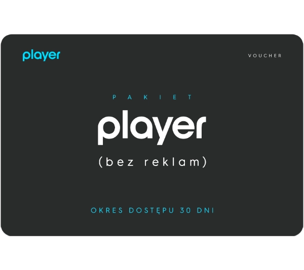 Opis: Kod / bon aktywacyjny zapewniający dostęp do pakietu PLAYER (bez reklam) przez 30 dni.