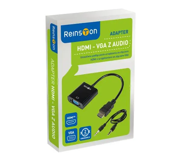 Adapter HDMI – VGA z audio EDV008 <a>Cechy produktu</a><a>Korzyści dla Ciebie</a><a>Co otrzymujesz</a><a>Warto wiedzieć</a>Cechy produktu Adaptercyfrowego portu HDMI na analogowy port VGA Przesyłaniedźwięku za pośrednictwem kabla jack 3,5 mm Filmyw wysokiej jakości – obsługiwana rozdzielczość do 1920x1080p (Full HD) Plug and Playpozwala na używanie urządzenia od razu po podłączeniuKorzyści dla Ciebie Praktycznaprzejściówka Adapter HDMI – VGA z audio Reinston EDV008 to niezbędne akcesorium dla osób, które posiadają niekompatybilne ze sobą sprzęty. Jeśli chcesz podłączyć konsolę do telewizora lub komputer do rzutnika, ale urządzenia mają inne wejścia, prezentowana przejściówka rozwiąże ten problem. Pozwala na podłączanie sprzętów źródłowych z cyfrowym złączem HDMI do odbiorników z tradycyjnym portem VGA. Przesyłaniedźwięku Za pośrednictwem kabla HDMI można przekazywać nie tylko obraz, ale również i dźwięk. Niestety w przypadku przewodu VGA nie ma takiej możliwości. Dlatego też w modelu Reinston EDV008 zastosowano sprytne rozwiązanie pozwalające obejść ten problem – adapter został wyposażony w złącze jack 3,5 mm umożliwiające przesyłanie ścieżki audio za pomocą dodatkowego kabla. ObrazFull HD Adapter nie wpłynie negatywnie na jakości przesyłanego sygnału, dlatego możesz cieszyć się doskonałym obrazem ulubionych filmów na dużym ekranie. Urządzenie umożliwia uzyskanie maksymalnej rozdzielczości 1920x1080p (Full HD) – zapewni to piękny, wyrazisty oraz pełen bogatych kolorów obraz podczas korzystania z multimediów. Uniwersalnedopasowanie Nie ma znaczenia, z jakiego oprogramowania sprzętu komputerowego korzystasz – każdy laptop czy PC może stać się urządzeniem źródłowym do przesyłania filmów czy seriali na odbiorniki. Reinston EDV008 współpracuje bowiem ze wszystkimi systemami operacyjnymi, w tym najpopularniejszymi, jak Windows, Mac czy Linux, dlatego łatwo dopasujesz go do potrzeb. Bez zasilania Wcześniej zdarzało Ci się korzystać z adapterów, które trzeba było podłączać do zasilania, by możliwe było przesyłanie danych po kablu? Reinston EDV008 korzysta z energii przekazywanej mu za pośrednictwem portu HDMI, dlatego w jego przypadku obsługa staje się o wiele łatwiejsza – nie musisz używać żadnych dodatkowych kabli i szykować kolejnego gniazdka elektrycznego.Co otrzymujesz W zestawie:✓ Adapter HDMI – VGA z audio✓ Kabel jack - jack 3.5 mmWarto wiedzieć Dlaczego warto korzystać z adapterów? <p>Reinston EDV008 i inne adaptery cieszą się ogromną popularnością. Jest to wynikiem technologicznych zmian, które przez cały czas zachodzą na naszych oczach. Powstają coraz to lepsze i szybsze standardy przesyłania danych, jednak aby być z nimi na bieżąco, trzeba by było co chwilę kupować nowe sprzęty elektroniczne. Adaptery natomiast pozwalają na połączenie starych wejść z nowymi bez konieczności wymiany urządzeń.</p>