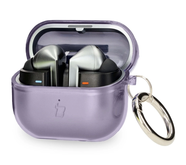 Etui na słuchawki Bizon Elastyczne z karabińczykiem do Samsung Galaxy Buds 3/3 Pro Przezroczysto-fioletowy