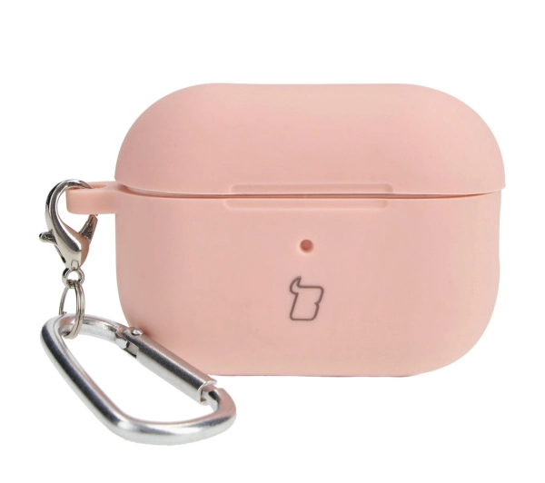 Etui na słuchawki Bizon Silikonowe z karabińczykiem do AirPods Pro 2 Jasnoróżowy