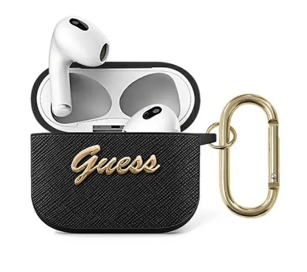 Etui na słuchawki Guess Saffiano Script Metal Collection GUA3SASMK do AirPods 3 Czarny