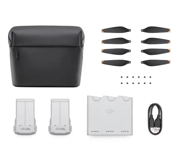 <h2>DJI mini 3 Pro Fly More Kit</h2>DJI mini 3 Pro Fly More Kit to komplet, który zapewnia pełne wsparcie w obsłudze drona służącego do tworzenia zjawiskowych fotografii czy filmów z lotu ptaka. Komplet zawiera wszystkie niezbędne akcesoria, od akumulatorów po zapasowe śmigła.Dwa inteligentne akumulatory lotnicze Intelligent Flight Battery – każdy zapewnia do 34 minut nieprzerwanej pracy.Dwukierunkowy hub ładowania – koncentrator do ładowania pilota oraz akumulatorów.Niezawodny kabel do transmisji danych USB 3.0 Type-C – wygodne pobieranie plików foto i wideo.Praktyczna i komfortowa torba na ramię do przenoszenia akcesoriów w dowolne miejsce.Zapasowe śmigła i śruby - wszystko, czego potrzebujesz, żeby Twój dron był gotowy do pracy.<h2>Poznaj zestaw akcesoriów do drona DJI mini 3 Pro Fly More Kit</h2> Inteligentne akumulatoryW zestawie akcesoriów do drona DJI mini 3 Pro Fly More Kit znajdziesz dwa dodatkowe inteligentne akumulatory Intelligent Flight Battery. Każdy z nich pozwala dronowi na pracę do 34 minut. Nie ważą wiele, więc obie baterie możesz zabrać ze sobą wszędzie. Dzięki dedykowanej, sprzedawanej osobno ładowarce typu USB-C, akumulatory naładujesz do pełna nawet w 3 godziny. Hub ładowaniaDwukierunkowy koncentrator ładowania to wielofunkcyjne rozwiązanie. Może ładować pilota do drona oraz trzy akumulatory – w tym dwa dodatkowe, które znajdziesz w komplecie DJI mini 3 Pro Fly More Kit. Hub ładowania może też być używany jako przenośne źródło zasilania drona. Zainwestuj w zestaw, z którym stworzysz najpiękniejsze fotografie lotnicze oraz materiały wideo. Kabel do transmisji danychW zestawie akcesoriów do drona DJI mini 3 Pro Fly More Kit znajduje się także kabel do transmisji danych typu USB 3.0 Type-C. Za jego pomocą szybko i bezproblemowo zgrasz pliki foto oraz wideo z drona na komputer czy tablet. Wystarczy podłączyć przewód i gotowe – to wygodne rozwiązanie, które umożliwi Ci pracę nawet w podróży. Szybki transfer pozwoli Ci przy tym oszczędzić cenny czas. Torba na ramięZapakuj wszystkie swoje akcesoria i zabierz je wszędzie – na spacer albo w podróż dookoła świata. Dzięki wygodnej torbie na ramię, która stanowi element DJI mini 3 Pro Fly More Kit, nie będziesz się martwić ani o swój komfort, ani o bezpieczeństwo akcesoriów, które zabierasz ze sobą z domu. Szybko docenisz solidne wykonanie, nowoczesne materiały i praktyczne kieszenie. Zapasowe śmigła i śrubyW DJI mini 3 Pro Fly More Kit znajdziesz zapasowe śmigła, wyróżniające się tym, że wytwarzają mniej hałasu. Zostały one specjalnie wyważone, żeby zapewnić wyższą wydajność aerodynamiczną i imponujący ciąg. Oprócz tego otrzymasz zestaw 12 zapasowych śrub, które mogą się przydać podczas korzystania z dron lub w razie jego awarii.<h2>Zawartość opakowania DJI mini 3 Pro Fly More Kit</h2>W opakowaniu 2 inteligentne akumulatory lotnicze Dwukierunkowy koncentrator ładowania 2 śmigła 12 śrub Torba na ramię Kabel USB 3.0 Type-C do transmisji danychDJI – marka godna zaufaniaŚwiatowy lider w produkcji dronówChińska marka z siedzibą w ShenzenUznanie wśród profesjonalistów i indywidualnych konsumentówRozwiązania, które ułatwiają obsługę urządzeńWiedza i doświadczenieNa rynku od 2006 roku