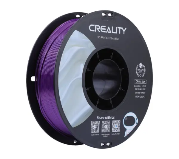 <h2>Filament CR-Silk PLA Creality (Fioletowy)</h2><p>Filament CR-Silk PLA od Creality to materiał o wyjątkowym metalicznym połysku, który dodaje elegancji każdemu wydrukowi. Dzięki temu idealnie sprawdza się przy tworzeniu figurek, ozdób czy biżuterii. Jest przy tym bardzo wytrzymały i kompatybilny z większością drukarek 3D marki Creality. Do jego wykonania zastosowano ekologiczne i trwałe materiały, co sprawia, że jest bezpieczny dla środowiska i użytkownika.</p> <h2>Bezproblemowe i efektywne drukowanie</h2><p>Dzięki precyzyjnemu nawinięciu CR-Silk PLA gwarantuje płynny przebieg druku z prędkością do 100 mm/s, bez ryzyka zacięć czy splątań. Dzięki temu możesz uniknąć marnowania materiału i zaoszczędzić czas – a wszystko to z zachowaniem najwyższej jakości modelu!</p> <h2>Świetny efekt, wyjątkowa trwałość</h2><p>Dzięki unikalnej formule CR-Silk PLA pozwala na uzyskanie pięknej, perłowej powierzchni modeli, co znacząco podnosi walory estetyczne wydruków – i to bez dodatkowej obróbki! Dodatkowo filament cechuje się dużą odpornością na zniekształcenia, niską kurczliwością oraz imponującą wytrzymałością – na rozciąganie do 35 MPa, a na zginanie aż do 67 MPa. Będzie więc doskonałym wyborem nawet do wymagających projektów.</p>