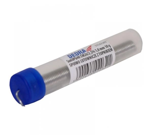 Cyna z topnikiem 1,0mm fiolka 10g - 31L61001 <ul> <li>Sn60Pb40</li> <li>SW26/3/2,5%</li> <li>średnica 1,0mm</li> <li>fiolka 10g</li></ul>