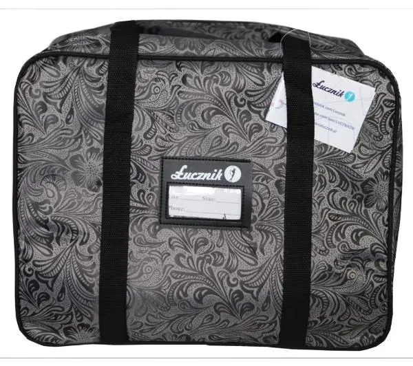 <ul> <li>torba na maszynę do szycia - wymiary : długość : 42 cm, szerokość 25 cm, wysokość 33 cm</li> <li>torba posiada usztywniane boki i twarde dno</li> <li>zabezpieczające maszynę przed uszkodzeniami</li> <li>materiał z którego jest wykonana torba to odporna na zabrudzenia tkanina żakardowa w srebrzysto-czarne wzory</li> <li>wewnątrz torby znajdują się trzy pojemne kieszenie na akcesoria do maszyny i szycia. Kieszenie zapinane na rzep.</li> <li>wygodne rączki do przenoszenia</li> <li>plakietka do uzupełnienia danych właściciela</li> <li>plastikowe nóżki na spodzie torby zabezpieczają ją przed zabrudzeniem</li> <li>rozmiar torby pasuje do wszystkich maszyn z oferty Łucznika</li></ul>