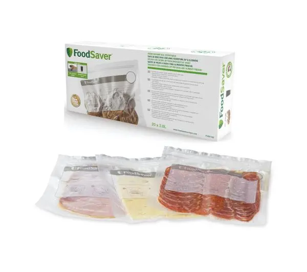 <p>Zapinane torebki próżniowe do świeżej żywności FoodSaver FVB016X, 20 sztuk </p><p>Zapinane torebki próżniowe FoodSaver® pozwalają ograniczyć marnowanie żywności i serwować rodzinie świeże, smaczne posiłki każdego dnia. Specjalnie zaprojektowane do użytku z ręcznym urządzeniem do pakowania próżniowego Foodsaver, są idealne do przechowywania świeżej żywności i codziennych przekąsek.</p> <ul> <li>20 worków o pojemności 3,8l przeznaczonych do częstego stosowania w celu przechowywania świeżych produktów w lodówce.</li> <li>Idealnie nadają się do próżniowego pakowania żywności lub resztek z obiadu, które można przechowywać nawet 2 razy dłużej.</li> <li>Wzmocnione zamknięcie z podwójnym zamkiem.</li> <li>Wolne od BPA</li></ul>Dzięki technologii próżniowej przechowywana żywność pozostaje świeża i smaczna nawet dwukrotnie dłużej, będąc przechowywana w lodówce lub w szafce. To idealne rozwiązanie dla rodzin, które chcą spożywać zdrowe posiłki i przekąski każdego dnia. <p>Zapinane torebki są łatwe do przenoszenia, dzięki czemu można je zabrać ze sobą, gdziekolwiek się chce. Idealnie nadają się do przygotowywania cotygodniowych posiłków i przekąsek. Duże etykiety na zewnętrznej stronie woreczków ułatwiają opisywanie i organizowanie żywności. Wreszcie, dzięki technologii próżniowej, woreczki próżniowe z zamkiem błyskawicznym kurczą się, co dodatkowo ułatwia ich przechowywanie i pozwala zaoszczędzić miejsce.Zaprojektowane z myślą o krótkotrwałym przechowywaniu, zapinane torebki próżniowe FoodSaver® są szybkie i łatwe do zamknięcia. Wykonane z wysokiej jakości wielowarstwowego materiału, pozwalają zaoszczędzić czas i pieniądze.</p>
