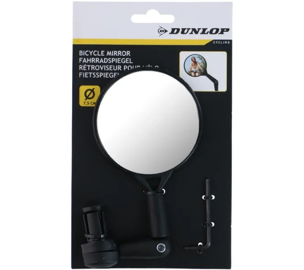 <h2>Lusterko wsteczne Dunlop do roweru - bezpieczeństwo i komfort jazdy</h2><h3>Szerokie pole widzenia i regulacja</h3><p>Lusterko Dunlop posiada dużą, okrągłą powierzchnię o średnicy 7,5 cm (centymetrów), co zapewnia szeroki kąt widzenia i minimalizuje martwe pola. Dzięki podwójnemu przegubowi można je precyzyjnie ustawić pod kątem idealnym dla rowerzysty, zwiększając kontrolę nad otoczeniem podczas jazdy.</p><h3>Solidna konstrukcja i uniwersalne zastosowanie</h3><p>Wykonane z wysokiej jakości tworzywa ABS (Acrylonitrile Butadiene Styrene), lusterko jest odporne na wstrząsy i uderzenia. Uniwersalne mocowanie do końcówki kierownicy sprawia, że pasuje do większości rowerów - miejskich, trekkingowych, elektrycznych i dziecięcych. Lekka konstrukcja nie obciąża kierownicy, a jednocześnie zapewnia stabilność i trwałość.</p><h3>Łatwy montaż i bezpieczeństwo na trasie</h3><p>Montaż lusterka jest szybki i prosty dzięki śrubie rozporowej, a ergonomiczny design umożliwia wygodne obserwowanie otoczenia bez odwracania głowy. To praktyczne rozwiązanie zwiększa bezpieczeństwo i komfort jazdy, sprawdzając się zarówno podczas miejskich przejażdżek, jak i dłuższych wypraw rowerowych.</p>