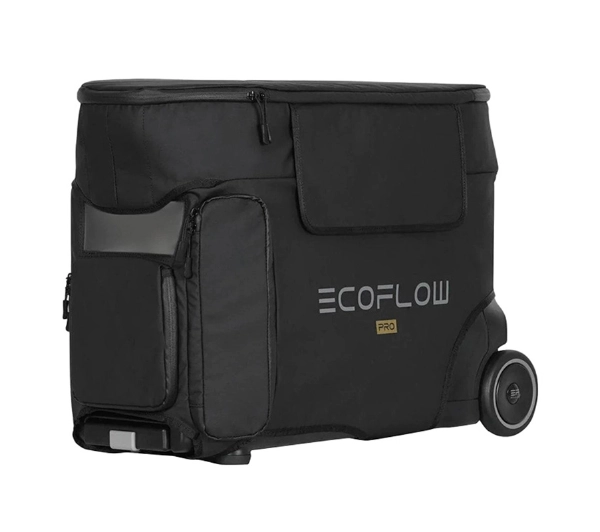 <h2>Torba EcoFlow DELTA Pro</h2><p>Torba została wykonana z wytrzymałego, wodoodpornego materiału, który skutecznie chroni stację zasilania DELTA Pro przed wilgocią, uszkodzeniami mechanicznymi i zarysowaniami podczas transportu. Dodatkowa kieszeń na pokrywie umożliwia przechowywanie kabli i akcesoriów, zapewniając szybki dostęp do najpotrzebniejszych elementów.</p> <h2>Odporna i funkcjonalna</h2><p>Materiał torby jest odporny na przetarcia i warunki atmosferyczne, co zapewnia ochronę urządzenia w różnych sytuacjach terenowych. Kieszeń zewnętrzna pozwala na uporządkowane przechowywanie przewodów, a solidne wykończenie zwiększa trwałość produktu.</p> <h2>Dostęp do wszystkich elementów</h2><p>Zintegrowana przezroczysta osłona ekranu LCD umożliwia podgląd parametrów pracy stacji bez konieczności zdejmowania torby. Konstrukcja zapewnia swobodny dostęp do portów, kółek i uchwytu, co pozwala na obsługę i przemieszczanie urządzenia bez ograniczeń.</p>