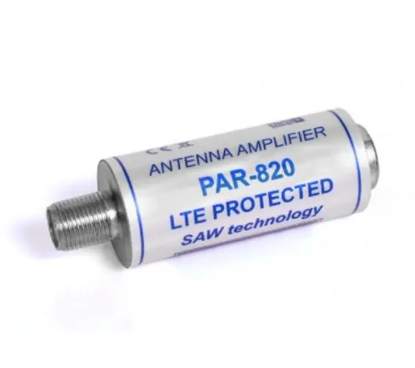 Przedwzmacniacz rurkowy TV typu PAR-820 5G PROTECTED przeznaczony jest do wzmacniania słabych sygnałów TV naziemnej odbieranych przez bierną antenę odbiorczą. Dzięki zastosowanej technologii SAW przedwzmacniacz w większości przypadków eliminuje sygnały 5G, nie usuwając sygnałów DVB-T. Kształt obudowy przedwzmacniacza umożliwia jego montaż w dowolnym miejscu współosiowego kabla antenowego. To oznacza, że można zastosować przedwzmacniacz w istniejącej instalacji antenowej bez konieczności demontażu anteny. Ze względu na pogarszający się wraz z odległością od anteny stosunek sygnał/szum, zaleca się umieszczenie samego przedwzmacniacza możliwie najbliżej anteny. Przedwzmacniacz rurkowy typu PAR-820 5G PROTECTED przeznaczony jest stosowania wewnątrz pomieszczeń. Urządzenie jest zasilane po kablu koncentrycznym od strony wyjścia. Z uwagi na szeroki zakres dopuszczalnych napięć zasilania 5-24V, przedmiotowy wzmacniacz można zasilać: bezpośrednio z tunera, z telewizora (powyższe urządzenia muszą posiadać możliwość wystawiania napięcia DC 5V) lub poprzez zewnętrzny separator zasilania (wraz zasilaczem).