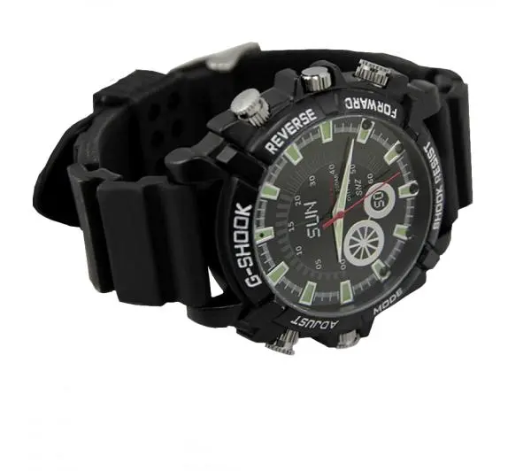 Zegarek szpiegowski z ukrytą kamerą FULL HD 1080p, posiada wbudowaną pamięć 8GB i diody IR do nagrywania w nocy.<ul> <li>Materiał: metal nieszlachetny, pasek silikonowy</li> <li>Mechanizm: kwarcowy</li> <li>Wbudowany mikrofon pozwala na rejestrację także dźwięku lub pracę jako dyktafon.</li> <li>Rozdzielczość wideo: 1920x1080p</li> <li>Rozdzielczość foto: 5Mpx, 2560x1920p</li> <li>Zegarek jest odporny na zachlapania.</li></ul>