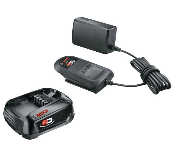 <h2>Bosch Starter Set 18V Alliance 1600A02625</h2> Zestaw Bosch Starter Set 18V Alliance 1600A02625 to kompletny pakiet do narzędzi akumulatorowych nadający się do użytku domowego jak i do firm. Dzięki kompaktowej konstrukcji bez problemu zabierzesz go ze sobą tam, gdzie go potrzebujesz. Zestaw oferuje elastyczność i oszczędność dzięki uniwersalnym akumulatorom kompatybilnym z wieloma narzędziami Niezwykle kompaktowa konstrukcja ułatwia pracę poza domem – z łatwością przetransportujesz go w dowolne miejsce Wskaźnik poziomu naładowania akumulatora pozwala kontrolować czas pracy bez niespodzianek System Power for All zapewnia kompatybilność baterii z szeroką gamą urządzeń Bosch <h2>Poznaj zestaw Bosch Starter Set 18V Alliance 1600A02625</h2> Elastyczność i oszczędność Zestaw Bosch Starter Set 18V Alliance 1600A02625 pozwala używać jednego akumulatora do wielu narzędzi, co ogranicza konieczność zakupu dodatkowych baterii. To rozwiązanie oszczędza pieniądze i zwiększa wygodę pracy, eliminując konieczność zabierania ze sobą dodatkowego sprzętu, dzięki czemu zyskujesz większą swobodę działania na każdym etapie pracy. Kompaktowa konstrukcja Kompaktowy i lekki zestaw startowy Bosch Starter Set 18V Alliance 1600A02625 może być bez problemu transportowany i nie zabierze Ci wiele miejsca. Dzięki swojemu designowi zestaw jest wygodny w użytkowaniu, co przekłada się na większą efektywność i komfort podczas dłuższych zadań, a także zmniejszenie zmęczenia i poprawę precyzji pracy. Wskaźnik stanu naładowania Praktyczny wskaźnik poziomu baterii pozwala na bieżąco monitorować jej naładowanie i zaplanować pracę bez niespodzianek. Dzięki temu unikniesz przestojów i zyskasz pewność, że narzędzie będzie gotowe do działania wtedy, gdy tego potrzebujesz, co znacznie usprawnia cały proces wykonywanych zadań. Power for All – uniwersalny system zasilania Bosch Starter Set 18V Alliance 1600A02625 wykorzystuje technologię Power for All, która pozwala zasilać różnorodne narzędzia Bosch jednym akumulatorem. To rozwiązanie znacząco obniża koszty zakupu i eksploatacji, zapewniając wygodę pracy dzięki łatwej wymianie baterii między urządzeniami oraz oszczędność miejsca w warsztacie czy domu. Zestaw pasuje do urządzeń Bosch. <h2>Zawartość opakowania Bosch Starter Set 18V Alliance 1600A02625</h2> W opakowaniu Akumulator Ładowarka Bosch – marka godna zaufania Wieloletnie zaufanie konsumentów Producent łączący potrzeby klientów z dążeniem do neutralności klimatycznej Jeden z liderów na rynku małego i dużego AGD Globalny dostawca sprzętów do profesjonalnego i domowego użytku Jakość potwierdzona certyfikatami Certyfikacje produktowe i wydłużone gwarancje potwierdzają niezawodność sprzętów