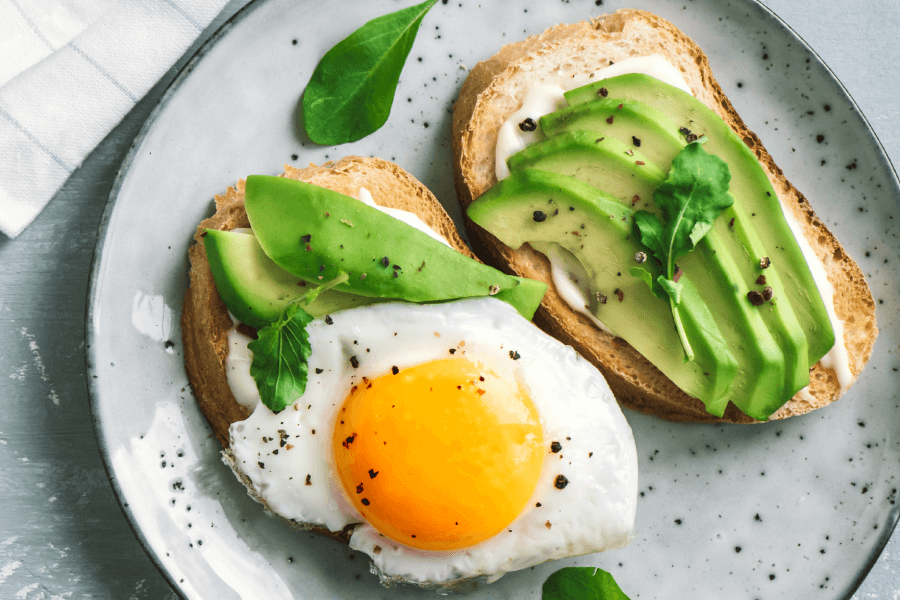 • Kanapka z chleba wieloziarnistego z awokado, rukolą i jajkiem