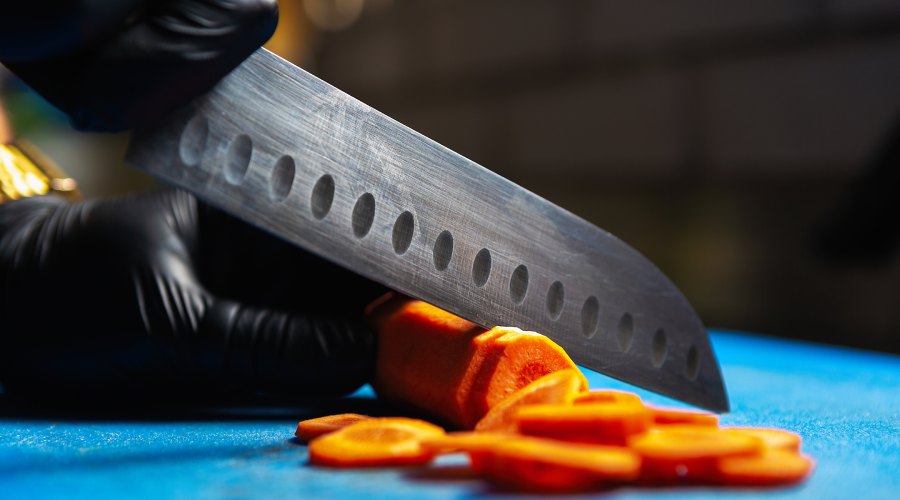 A skoro o ostrzu mowa – jego długość może być różna i waha się od 14 do 18 cm. Charakterystyczny wygląd, łączący zalety tasaka (za sprawą prosto ściętej krawędzi tnącej) i ostro zakończonego noża szefa kuchni odpowiada za możliwość szerokiego zastosowania noża. Krótsze ostrze doskonale sprawdzi się podczas krojenia warzyw i owoców, więc miłośnikom kuchni roślinnej zapewne łatwiej będzie korzystać z mniejszego noża. Natomiast osoby, które często kroją mięso, powinny wziąć pod uwagę zakup dłuższego ostrza. Ponieważ wybór jest duży, każdy może dopasować ten parametr tak, aby jak najsprawniej rozdrabniać składniki. Opcja wyboru długości ostrza, a zatem wielkości noża ma też znaczenie w kontekście wzrostu kucharza. Niższym osobom na pewno łatwiej będzie posługiwać się tym nieco mniejszym.