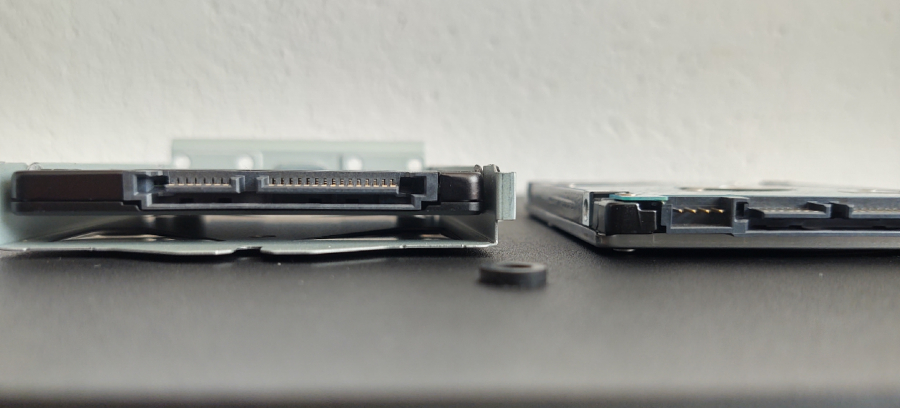 · wyciągamy dysk twardy i w jego miejsce wkładamy nowy. UWAGA! Dysk SSD jest zazwyczaj mniejszy niż HDD, dlatego między nim a uchwytem może być trochę wolnej przestrzeni;