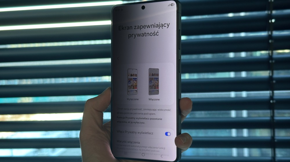 Co istotne, jest to funkcja, którą można włączać i wyłączać z poziomu ustawień telefonu, więc nie trzeba już nakładać specjalnych szkieł ochronnych z polaryzacją na ekran. To kluczowe rozwiązanie dla osób pracujących z poufnymi danymi w miejscach publicznych – koniec z ciekawskimi oczami w metrze czy kawiarni.