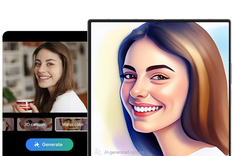 AI ogromnie upraszcza edycję zdjęć. Asystent Aparatu (Photo Assist) sprawia, że wystarczy przytrzymać palec na wybranym obiekcie na fotografii, aby go przesunąć, usunąć lub powiększyć. Wrażenie robi również Studio portretu (Portrait Studio) – funkcja, która pozwala zmieniać zdjęcia w efektowne dzieła sztuki.