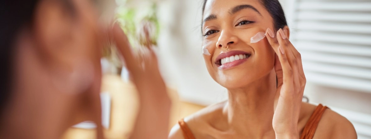 - Oczyszczanie skóry – dokładnie zmyj makijaż płynem micelarnym i oczyść skórę twarzy, szyi i dekoltu (np. za pomocą specjalnej szczoteczki do mycia twarzy). Możesz użyć delikatnego peelingu enzymatycznego, aby usunąć martwy naskórek i zwiększyć wchłanianie się substancji aktywnych.