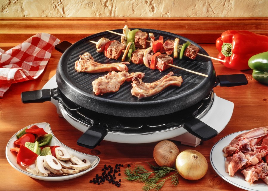 · Grill elektryczny do raclette – to już specjalnie zaprojektowany grill elektryczny z odpowiednimi płytami grzewczymi. Raclette to rodzaj potrawy wymyślonej przez alpejskich pasterzy, którzy polewali ziemniaki i cebulę stopionym nad ogniem serem. Z czasem zaczęto topić ser w specjalnych patelniach. Grill do raclette ma dwie oddzielne płyty – na jednej podgrzewa się ser, a na drugiej – mięso i warzywa.