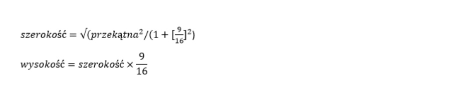 Aby obliczyć wymiary ekranu, trzeba znać proporcje jego boków, które w większości laptopów wynoszą 16 : 9. Stosując prostą formułę, można określić zarówno szerokość, jak i wysokość ekranu: