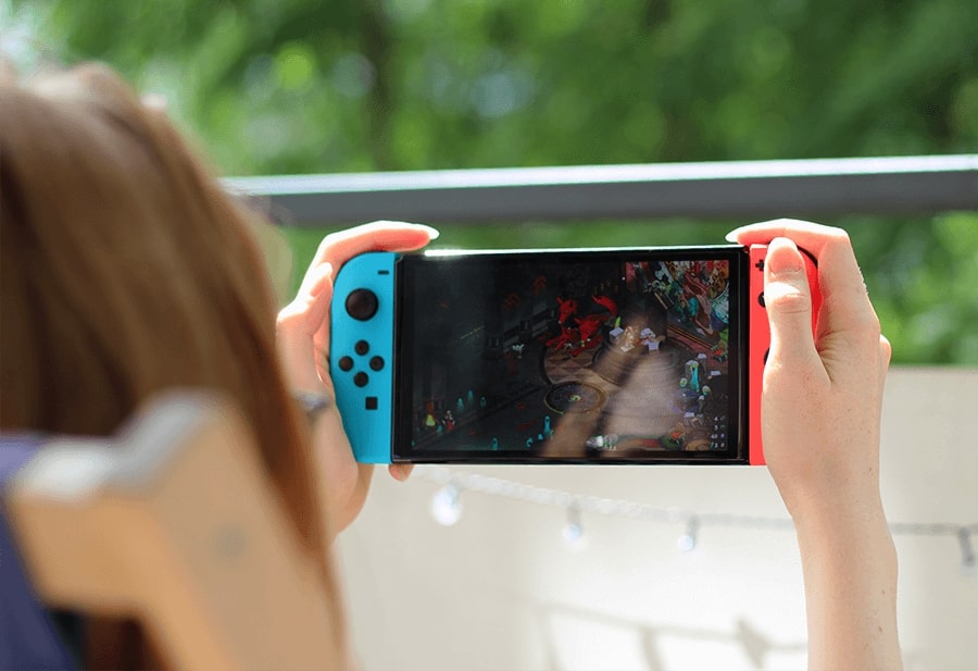 Ekran OLED ma jeszcze jedną zaletę. Gdy piszę tę recenzję, za oknem grzeje lipcowe słońce. Mając starego Switcha, musiałabym znaleźć jakiś zaciemniony kąt, by widzieć, co się dzieje na ekranie. Z wersją OLED mogę grać, leżąc na leżaku, a odbijające się promienie słoneczne nie będą stanowiły dużego problemu. Jest to najlepsza konsola Nintendo do grania na zewnątrz.