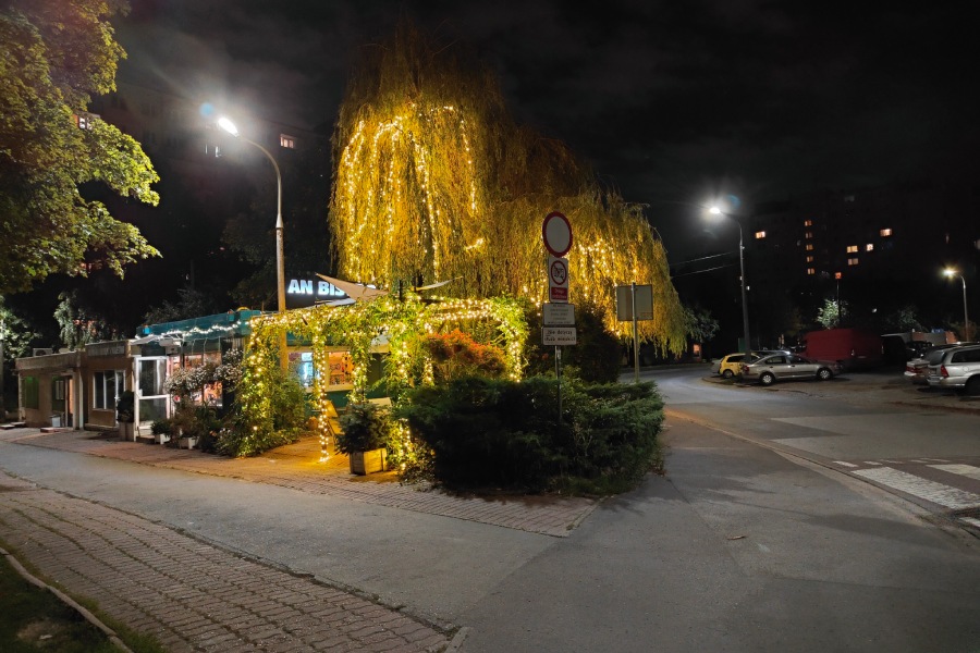 Zauroczyły mnie zdjęcia nocne z wykorzystaniem funkcji Ultra Night (przykłady poniżej) – wychodzą magicznie. A w dodatku, jak na zdjęcia robione w bardzo słabym świetle, są bardzo jasne i wyraźne. Bez żadnych specjalnych ustawień, po prostu „z ręki” można zrobić efektowne zdjęcie miejsca, które za dnia wygląda zupełnie przeciętnie. Co ciekawe i ważne, zdjęcia przy bardzo słabym oświetleniu wychodzą też dobrze bez użycia trybu Ultra Night.
