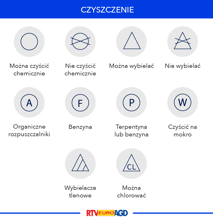 Oznaczenia na metkach oznaczające czyszczenie chemiczne