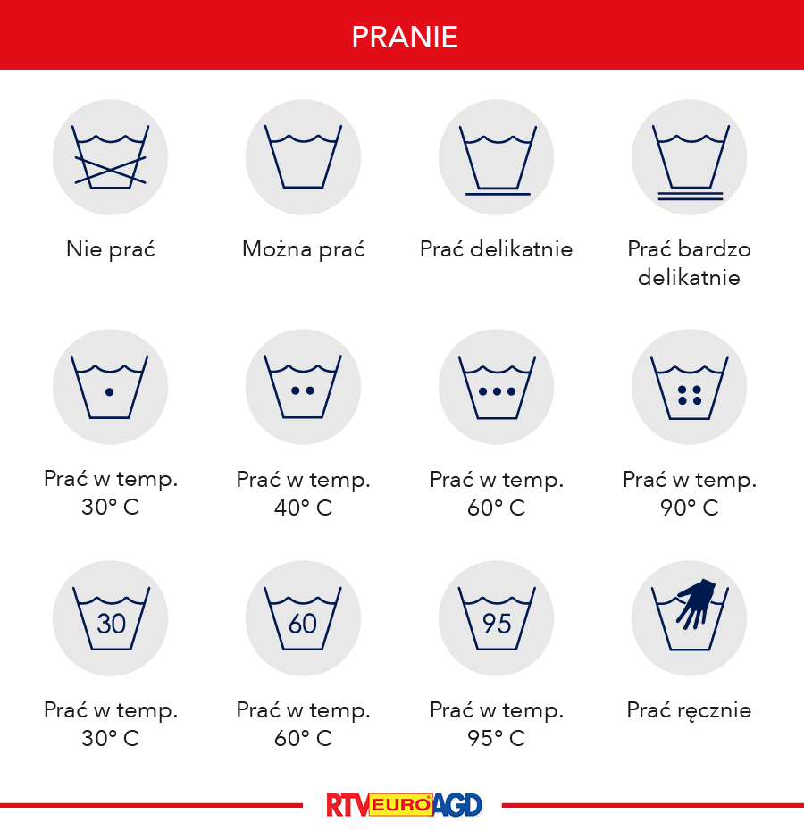Przy obecnie rozwiniętej technologii prania, suszenia i prasowania, trzeba się naprawdę postarać, żeby zniszczyć swoje ulubione ubrania. Pralki automatycznie potrafią dobrać program prania do rodzaju tkaniny, użyć odpowiedniej ilości detergentów czy dopasować ilość obrotów wirowania. Suszarki wyposażone w kondensacyjny system suszenia prania dbają o odpowiednią temperaturę wewnątrz bębna aby nie zniszczyć tkanin. Żelazka posiadają specjalne czujniki zapobiegające przypaleniu ubrań. Wszystko po to, aby jak najmniej ingerować w proces prania. Ale nie każdy rodzaj ubrań nadaje się do prania w pralce lub wybranej temperaturze – o tym informują oznaczenia na metkach. Sprawdźmy co one oznaczają.