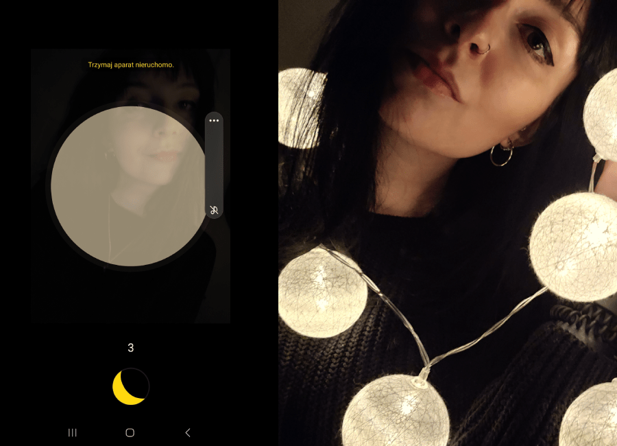 Dość często wykonuję zdjęcia i nagrywam filmiki za pomocą przedniej kamery. Ich jakość w nowym Samsungu okazała się naprawdę dobra, zarówno w pełnym świetle dziennym, jak i domowych warunkach subtelnego oświetlenia niewielkich lampek. Odpowiednio wyważone przybliżenie kadru nie zniekształca obrazu, możliwość poszerzenia perspektywy w celu wykonania zdjęcia więcej niż jednej osoby również pozwala uzyskać naturalny i estetyczny efekt. Jakość zdjęć selfie oraz nagrań wideo otrzymanych przy wykorzystaniu kamery frontowej jest bardzo dobra. Przy słabszym oświetleniu na ekranie smartfona pojawia się informacja o tym, by trzymać urządzenie nieruchomo, przy czym inteligentne funkcje aparatu przechwytują obraz, odpowiednio wydłużając czas naświetlania, jednocześnie dbając o jego jak najlepszą jakość.
