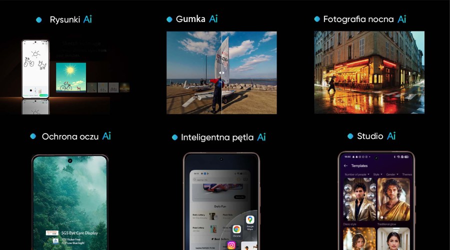 Sztuczna inteligencja na stałe zagościła w dzisiejszych smartfonach. Również realme GT 7 Pro korzysta z jej dobrodziejstw. Inteligentna Pętla AI to przełomowe rozwiązanie, które przewiduje działania użytkownika, ucząc się jego nawyków i optymalizując działanie aplikacji, by jeszcze bardziej usprawnić obsługę urządzenia. Dzięki Gumce AI można poprawić zdjęcia w mgnieniu oka, usuwając z nich zbędne elementy i nadając im bardziej profesjonalny wygląd. Studio AI to z kolei innowacyjna aplikacja, która umożliwia przekształcanie zdjęć, pozwalając autorowi się przenieść w niezwykły świat kreatywnych wizji. Funkcja od szkicu do obrazu AI umożliwia natomiast łatwe tworzenie ilustracji i dodawanie elementów graficznych do zdjęć.