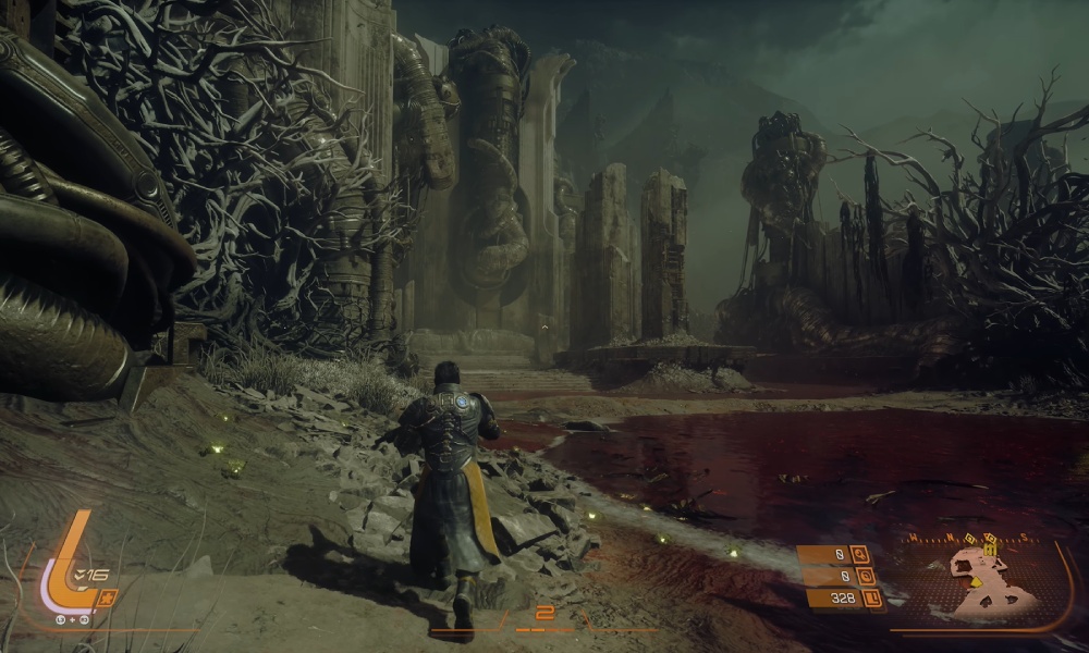 Jednocześnie Housemarque nie rezygnuje z narracji środowiskowej, znanej z Returnal. Historia planety Carcosa i zaginionej kolonii odkrywana jest m.in. poprzez hologramy oraz pozostawione ślady poprzednich wydarzeń. To właśnie podczas eksploracji gracz stopniowo składa fabularną układankę, poznając losy mieszkańców i naturę tajemniczych zjawisk.