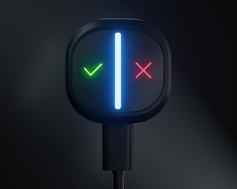 To z pozoru bardzo proste urządzenie, które montujesz w samochodzie, by na bieżąco otrzymywać powiadomienia o sytuacji na trasie. Sam sprzęt jest niewielki i dyskretny – ma formę modułu, który bez problemu wpasuje się we wnętrze samochodu, nie rzuca się w oczy i nie zajmuje zbyt wiele miejsca. Minimalistyczna obudowa i paski LED sprawiają, że informuje kierowcę o zdarzeniach w sposób czytelny, ale nienachalny, a całość została pomyślana tak, żeby działać w tle i nie wymagać ciągłej uwagi.