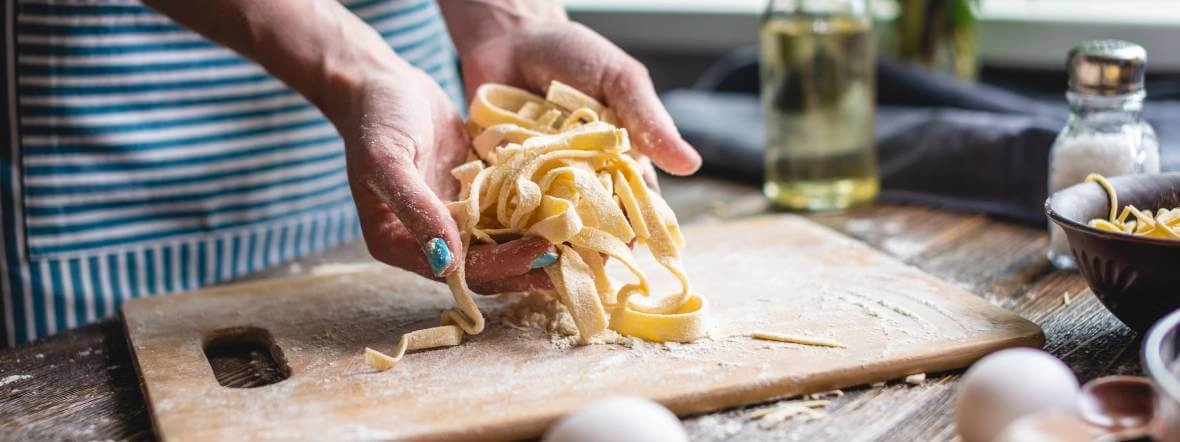 Z ciasta makaronowego przygotujesz różne rodzaje makaronu. Na przykład cienkie nitki do rosołu, jak dawniej u babci. Ale to tylko początek. Fazzoletti, lasagne, pansotti, cannelloni, agnolotti, cappelletti, tagliatelle, pappardelle czy fettuccine – to nie tylko podstawa włoskiej kuchni, ale też najprostszy sposób na pożywny posiłek. Z masłem i szałwią, klasyczny z pesto, sycący z sosem bolońskim, lekki z pomidorami i mozzarellą, z nadzieniem z ricotty czy grzybów albo zapieczony z bakłażanami czy mięsnym farszem. Podaj go z ulubionymi dodatkami i ciesz się wyjątkowym smakiem domowego makaronu.