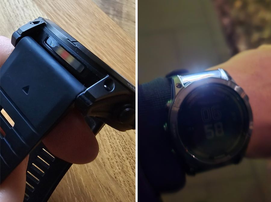 Tym, co wyróżnia smartwatch, jest wbudowana latarka LED, która jest dużo wygodniejsza od świecenia za pomocą ekranu urządzenia, jak ma to miejsce przypadku innych inteligentnych zegarków. Napiszę o niej trochę więcej w dalszej części recenzji Garmin Fenix 7X Pro Solar.