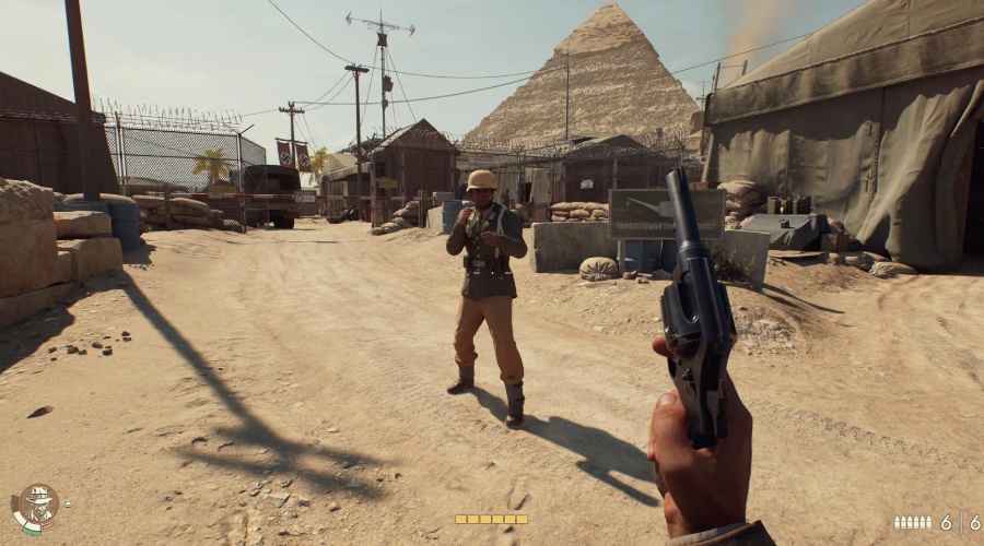 Trochę słabiej wypada strzelanie. Od razu widać, że gra nie była projektowana pod taki styl rozgrywki. Niemniej jednak broń palną możemy wykorzystać, co prawda narażamy się wtedy na ryzyko zaalarmowania tłumu wrogów, ale mimo to w grze jest kilka momentów, gdy użycie pistoletu jest bardzo przydatne i skuteczne. Szczególnie w starciach z bossami strzelanie wydaje się niezwykle efektywne. Jeżeli chodzi o dostępny arsenał, to Indiana zawsze ma przy sobie rewolwer, broni upuszczanych przez wrogów nie można umieścić w ekwipunku, mogą one więc służyć tylko za broń tymczasową. Strzelanie jest na tyle toporne, że ja sam podczas całej gry korzystałem z niego bardzo sporadycznie. Zdecydowanie bardziej podobały mi się inne sposoby radzenia sobie z przeciwnikami.