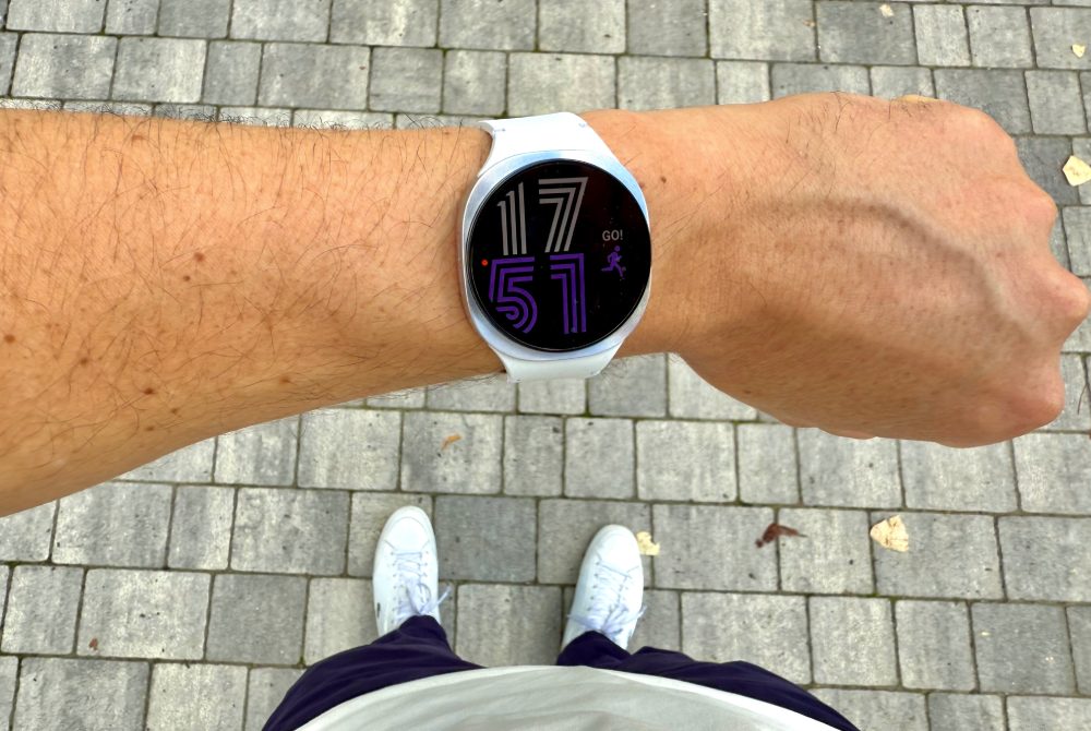 Galaxy Watch8 dostępny jest w dwóch rozmiarach: 40 mm (z ekranem o przekątnej 1,34 cala) i 44 mm (z ekranem o przekątnej 1,47 cala). Ja testowałem ten pierwszy i wydawał mi się w zupełności wystarczający na mój nadgarstek, wersja 44 mm wydaje się odpowiednia na duże nadgarstki, chyba że ktoś jest fanem noszenia większych zegarków. Do wyboru są również dwie wersje kolorystyczne: srebrna i grafitowa, a także wariant z LTE (moduł łączności komórkowej, który pozwala smartwatchowi funkcjonować niezależnie od połączenia ze smartfonem) lub bez niego.