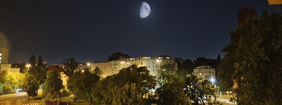 Hitem vivo X60 Pro są zdjęcia nocne, a zwłaszcza „kosmiczne”, czyli tryby astro oraz superksiężyc. Najczęściej będziesz używał zwykłego trybu nocnego, przyda się w każdej statycznej sytuacji po zmierzchu – naświetlanie trwa kilka sekund, więc musisz stabilny jak statyw! W ten sposób zrobisz piękny nocny portret czy architektoniczny pejzaż bez dodatkowych lamp. Tryb astro naświetla nawet 7 s – z totalnie czarnego nieba zrobi niebo niebieskie, ale z widocznymi gwiazdami. „Księżyc” fokusuje się na jednym jasnym obiekcie, przestrzeń wokół pozostaje ciemna. Polecany do Księżyca w pełni.