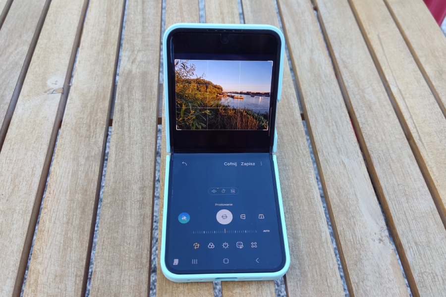 Dla mnie opcja zginania była wygodna także podczas obsługi apek w wypadku dużego ekranu, na przykład przy edycji zdjęć – z telefonu mogłam korzystać jak z miniaturowego laptopa. Jakoś wygodniej mi było, gdy połowa ekranu, ta z obrazem, była ustawiona pod kątem, a opcje wybierałam z dolnej połowy.