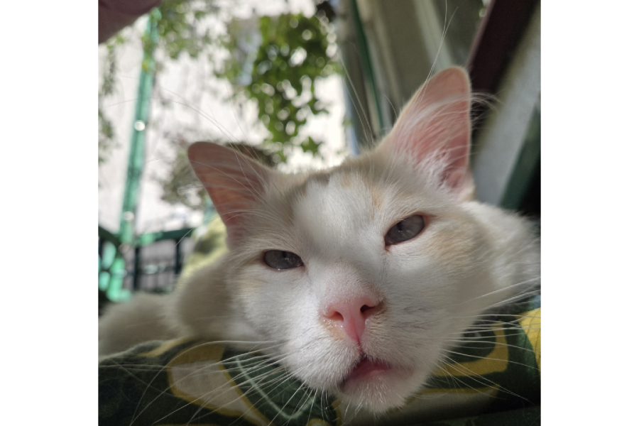 Po zamknięciu telefonu właśnie ten jego najlepszy 50 Mpix aparat może odgrywać rolę aparatu do selfie (poniżej przykład selfie kota) – podgląd widzimy wtedy na mniejszym ekranie. To funkcja FlexCam. Za pierwszym razem musiałam się chwilę zastanowić, jak z niej skorzystać. Potem uruchamianie aparatu na zewnętrznym ekranie stało się już dla mnie odruchowe. Aby go włączyć, wybudzamy zewnętrzny wyświetlacz i przeciągamy ikonę aparatu na środek lub szybko dwukrotnie wciskamy Power. FlexCam wyłączamy, przeciągając palcem z lewej strony ekranu od dołu do góry.