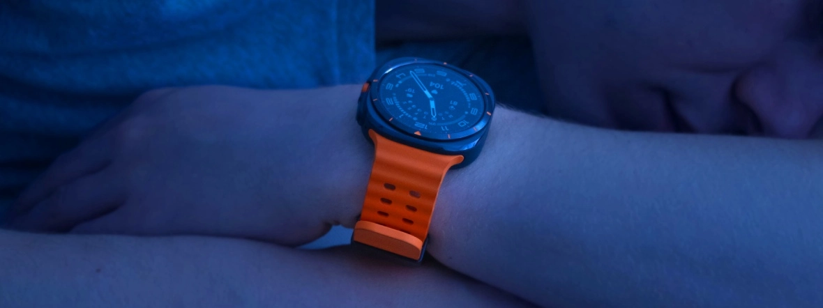 Samsung Galaxy Watch Ultra, smartwatch z najwyższej półki, dostarczył mi najszerszego zakresu danych i jeszcze bardziej ułatwił mi kontrolowanie snu. Wyposażony w zaawansowane czujniki – optyczny czujnik tętna, akcelerometr, żyroskop, czujnik SpO2 i monitor temperatury skóry – rejestruje fazy snu, tętno w nocy, ruchy ciała, poziom stresu i potencjalne zaburzenia oddechowe.