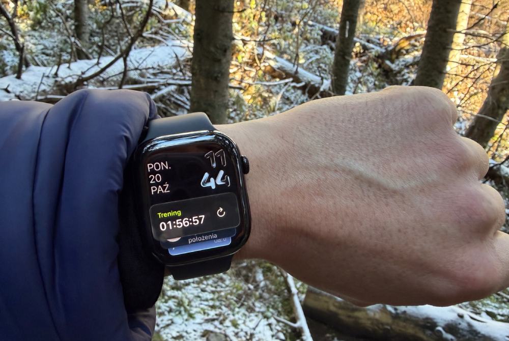 Oczywiście intensywne treningi skrócą ten czas – przy ciągłym śledzeniu GPS podczas niemal całodziennej wędrówki po górach w pełni naładowany rano akumulator miał na koniec dnia 5% energii. To wciąż wynik pozwalający bez problemu zarejestrować maraton od startu do mety, choć do najlepszych w tym względzie najnowszemu zegarkowi Apple jeszcze trochę brakuje. Mimo to zmiana jest odczuwalna – Watch Series 11 ładowałem zazwyczaj w okolicach wieczoru drugiego dnia, a nie każdego wieczoru, jak w przypadku poprzednika.