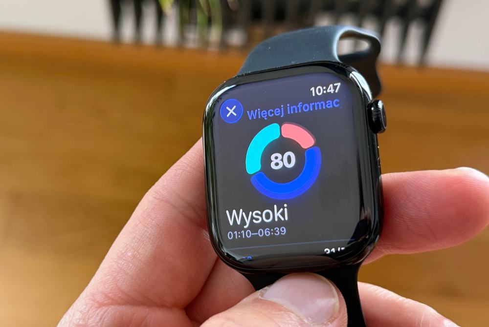 Drugą istotną nowinką, jeśli chodzi o monitoring zdrowia, jest Wynik snu, czyli czytelny wskaźnik jakości spania. Apple Watch Series 11 zbiera informacje o długości poszczególnych faz snu, tętnie oraz ruchach ciała w nocy, a następnie przedstawia wynik snu (liczba z przedziału 0–100), obrazujący ogólną jakość odpoczynku. Dzięki temu łatwiej ocenić, czy nasz sen był efektywny, i wychwycić ewentualne problemy (np. niespokojny sen, zbyt małą regenerację). Funkcja ta uzupełnia zaawansowane możliwości monitorowania snu już od jakiegoś czasu dostępne na Apple Watchu, w tym możliwość wykrywania bezdechu sennego (czyli zatrzymania oddechu podczas spania).