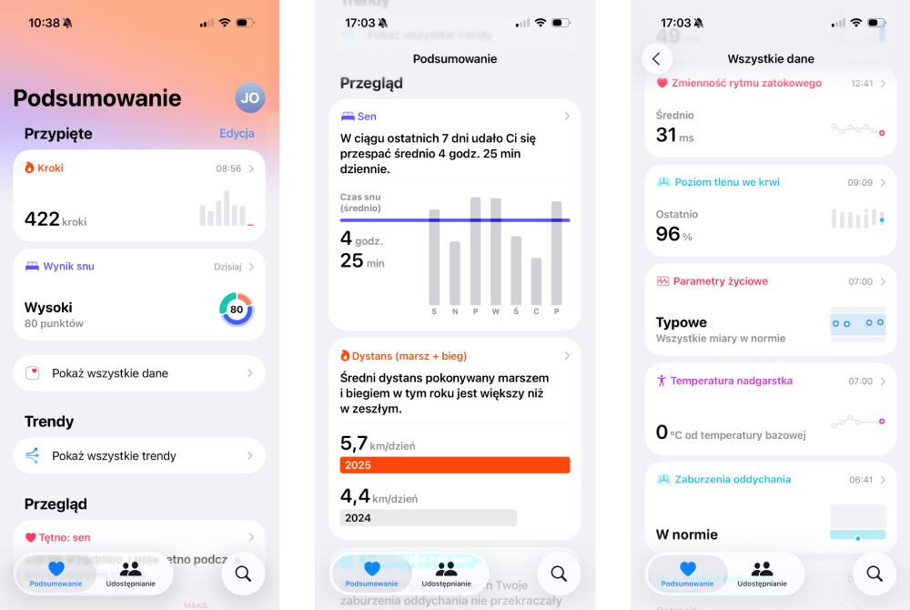 Nie mogę pominąć także aplikacji Parametry życiowe, która prezentuje skondensowaną analizę stanu zdrowia, czy Uważność, która jest pomocna w dbaniu o zdrowie psychiczne i równowagę emocjonalną.