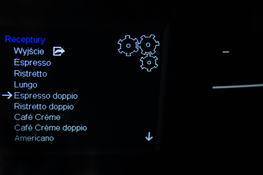 Rozpracowanie działania panelu dotykowego i odkrycie wewnętrznego menu urządzenia zajęło mi dłuższą chwilę. Odkrycie listy oferowanych przez ekspres rodzajów kaw złagodziło jednak wszelkie frustracje.