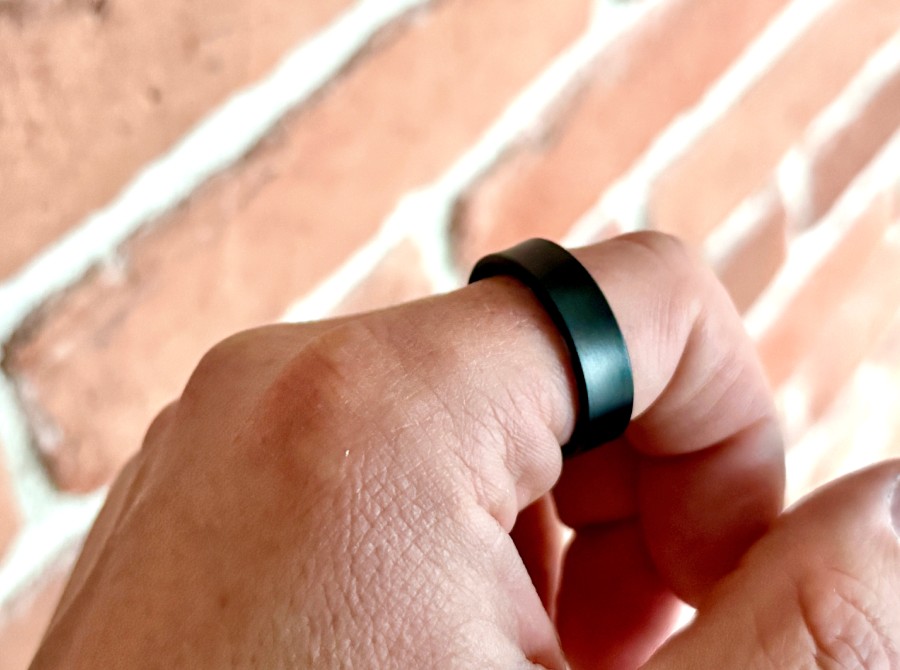Jak na inteligentny pierścień Galaxy Ring nie jest też jakoś specjalnie gruby – w porównaniu z większością konkurencyjnych urządzeń wypada na tym polu zdecydowanie bardzo dobrze. Obudowa Samsung Galaxy Ring jest lekko wklęsła do środka – według mnie pierścień lepiej by wyglądał, jeśliby tej wklęsłości nie miał. Wersja czarna – którą nosiłem na potrzeby tego testu Galaxy Ring – ma matowe wykończenie, ale srebrna i złota mają już połysk. Generalnie Galaxy Ring prezentuje się dobrze i ze swoim minimalistycznym designem dopasuje się do praktycznie każdej stylizacji.