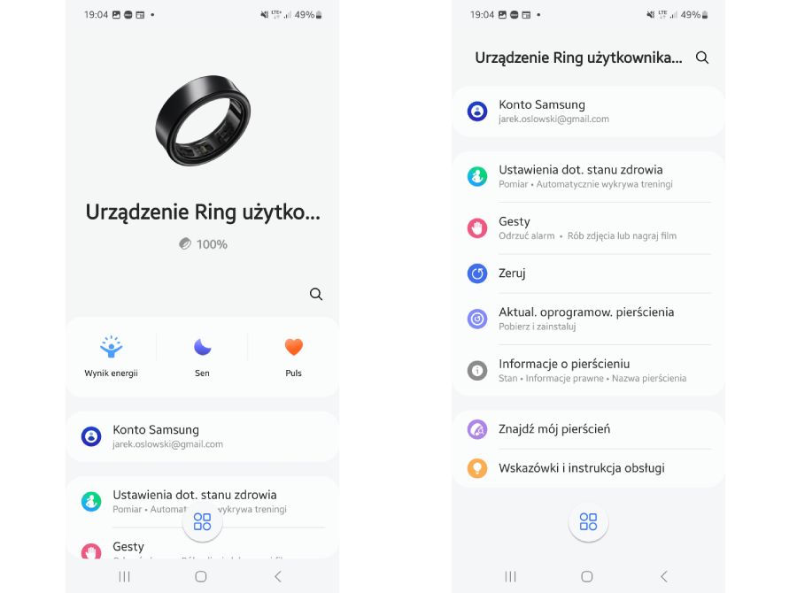 Galaxy Ring najlepiej działa w połączeniu z innymi urządzeniami z ekosystemu Samsung Galaxy. Jeśli mamy na ręku również Samsung Galaxy Watch, to smartfon będzie pobierał odczyty od tego urządzenia, które w danym momencie jest bardziej dokładne. Jeśli nie będzie mu w danej chwili potrzebny Galaxy Ring, to wyłączy czujniki w pierścieniu, pozwalając mu zaoszczędzić energię w baterii.