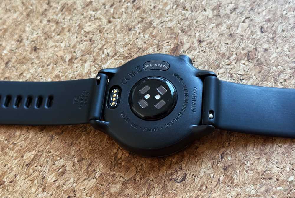 Koperta vívoactive 6 ma średnicę 42 mm. Ekran okala ramka z anodyzowanego aluminium, a obudowa wykonana jest z tworzywa wzmocnionego włóknem szklanym. Zegarek Garmin jest urządzeniem wytrzymałym, odpornym np. na uderzenia. Zdarzyło mi się przypadkowo zahaczyć nim o twardy tynk czy ramę drzwi, bez żadnych konsekwencji. Również ekranem, który zabezpiecza szkło Corning Gorilla Glass 3.