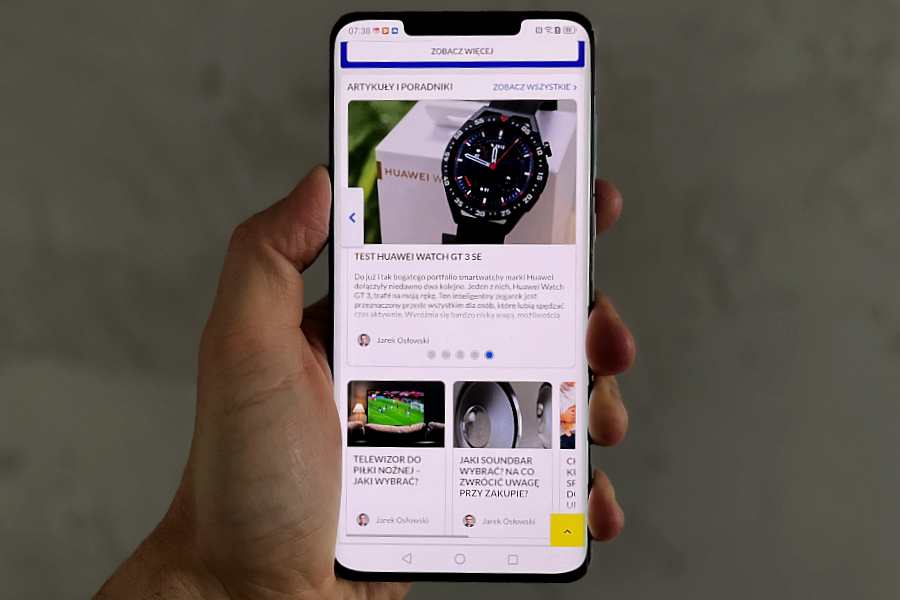 Wspomniany już wcześniej, zakrzywiony po bokach ekran OLED jest bardzo duży – ma przekątną 6,74 cala. Jego rozdzielczość to Full HD+, 2616 x 1212 Mpix (gęstość 428 ppi). Jest niezwykle czytelny, cechuje się świetnym kontrastem i nasyceniem kolorów. Choć pogoda nie pozwoliła mi sprawdzić, jak spisuje się podczas silnego nasłonecznienia, to nie mam wątpliwości, że w takiej sytuacji poradzi sobie bez zarzutu.