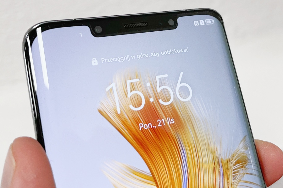 Jego przód zajmuje praktycznie w całości duży ekran OLED, który zakrzywia się na oba boki urządzenia. Dzięki temu ma się wrażenie, że wyświetlacz jest jeszcze większy niż w rzeczywistości. Przy górnej krawędzi znajduje się notch, który jest dość długi, ale przy tym wąski, dlatego też nie zabiera dużo przestrzeni ekranowi. Huawei Mate 50 Pro jest jednym z niewielu telefonów na rynku, który możesz odblokować zarówno skanerem linii papilarnych (umieszczono go pod wyświetlaczem), jak i za pomocą skanowania twarzy. Oba rozwiązania spisują się bez zarzutu – są responsywne i działają szybko.