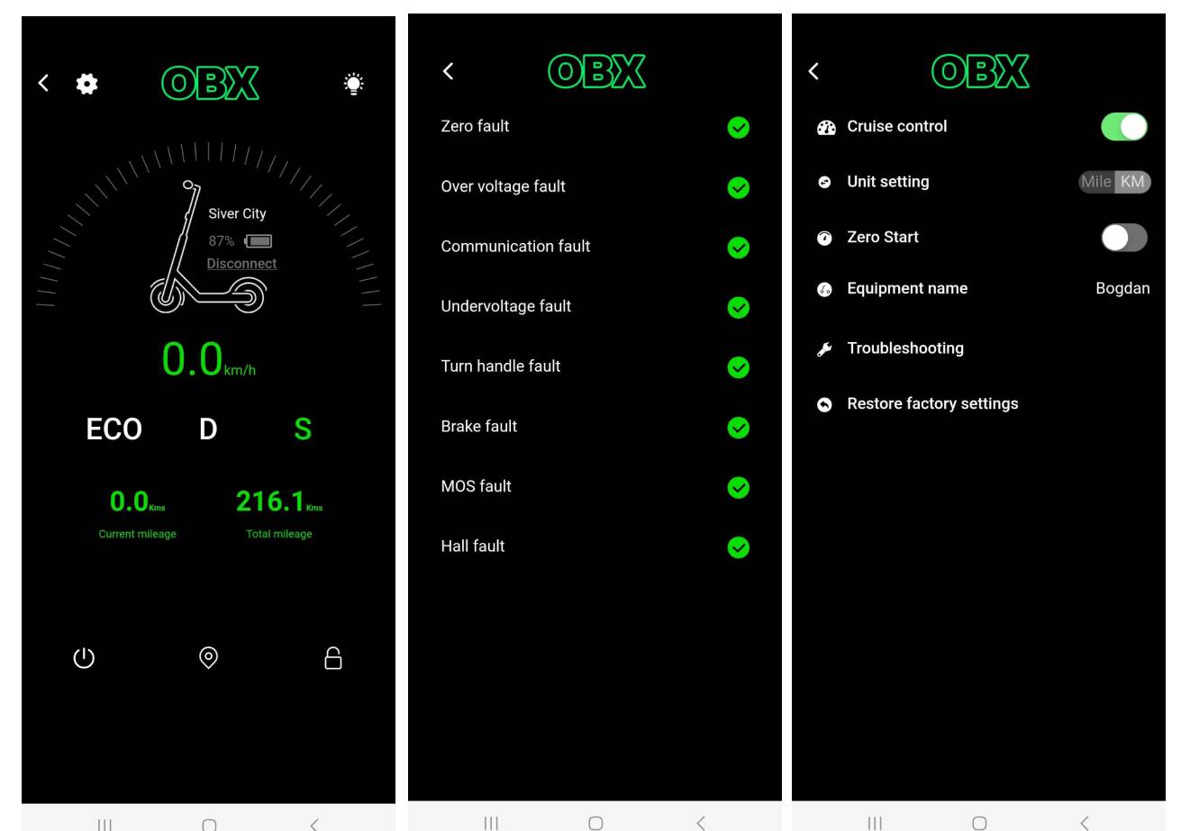 Obsługa hulajnogi nie jest skomplikowana, chociaż jej pierwsze uruchomienie może sprawiło mi nieco kłopotu, ponieważ nie mogłam znaleźć informacji na temat uruchamiania jej za pomocą aplikacji, ani jej nazwy w instrukcji. Do uruchomienia hulajnogi potrzebna jest aplikacja OBX Scooter. Hulajnoga miała w aplikacji ustawioną blokadę – zamkniętą kłódkę w ustawieniach. Wystarczyło na nią kliknąć, aby się otworzyła i tym samym odblokowała koła hulajnogi. Aby móc uruchomić silnik i ruszyć, musiałam jeszcze odblokować w ustawieniach suwak Zero Start. Z danych producenta wynika jednak, że wystarczy odepchnąć się kilka razy, a następnie włączyć napęd, aby hulajnoga ruszyła. Dla mnie nie było to intuicyjne więc podczas testów nie miałam okazji tego wypróbować. Nie mniej, taki system uruchamiania hulajnogi gwarantuje, że nie zostanie ona skradziona przez przypadkową osobę. Jednak jeśli ktoś już wie, jak ją uruchomić, i ma zainstalowaną aplikację, uruchomi ją bez trudu, ponieważ nie ma zabezpieczenia, które zapamiętuje tylko jedno urządzenie. Tak więc mimo konkretnej ścieżki uruchamiania, nie polecam zostawiania jej bez porządnego przypięcia na przykład do stojaka rowerowego.